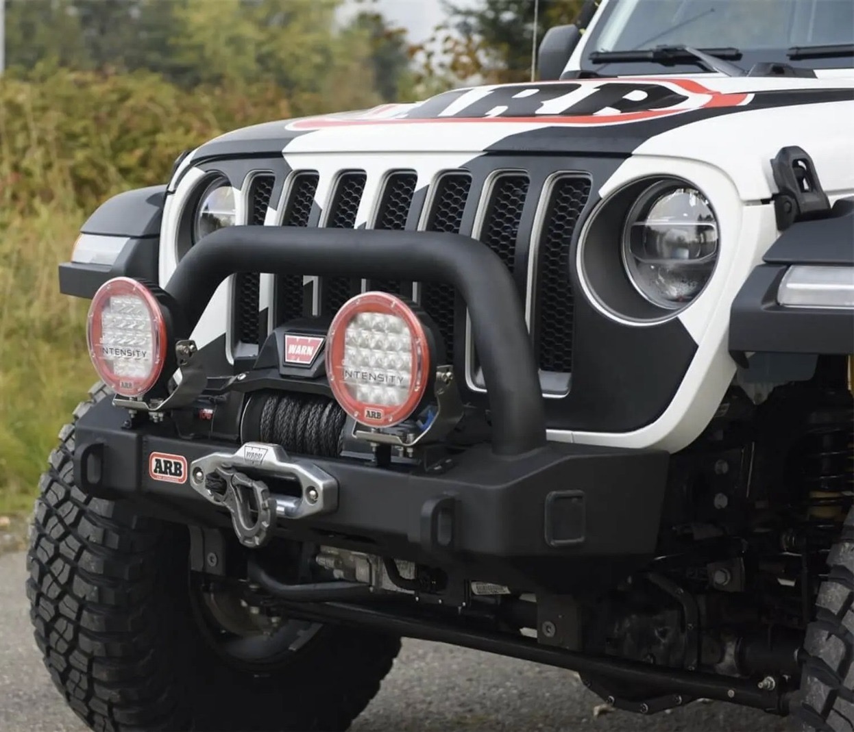 Uno de los principales beneficios de la Defensa para Jeep Wrangler JL y JT Stubby ARB es su base integrada para winch, compatible con la mayoría de los modelos tradicionales de perfil bajo y cabrestantes de patrón estrecho. Además, incluye soporte para la caja de control y opciones de montaje que facilitan la instalación.