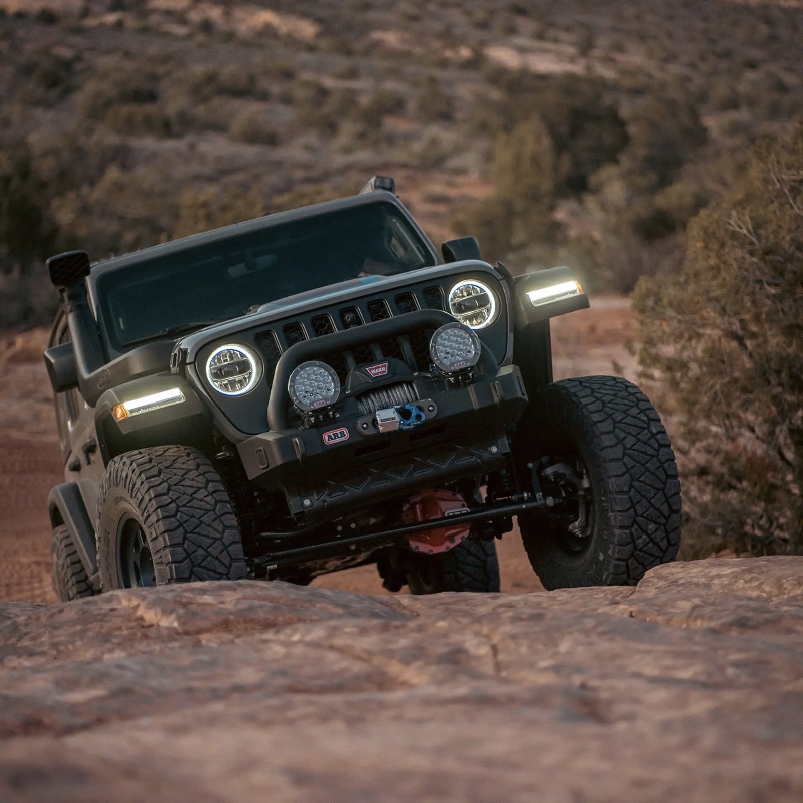 La Defensa para Jeep Wrangler JL y JT Stubby ARB está diseñada para quienes buscan una solución resistente y funcional que permita instalar un winch sin sacrificar espacio libre para neumáticos de gran diámetro. Gracias a su diseño compacto tipo stubby, esta defensa es apenas más ancha que el chasis, lo que ayuda a evitar roces y mejora el ángulo frontal. Además, su construcción en acero de alta resistencia proporciona una protección superior frente a la defensa original, convirtiéndola en una opción ideal para quienes desean reforzar la parte frontal de su Jeep.